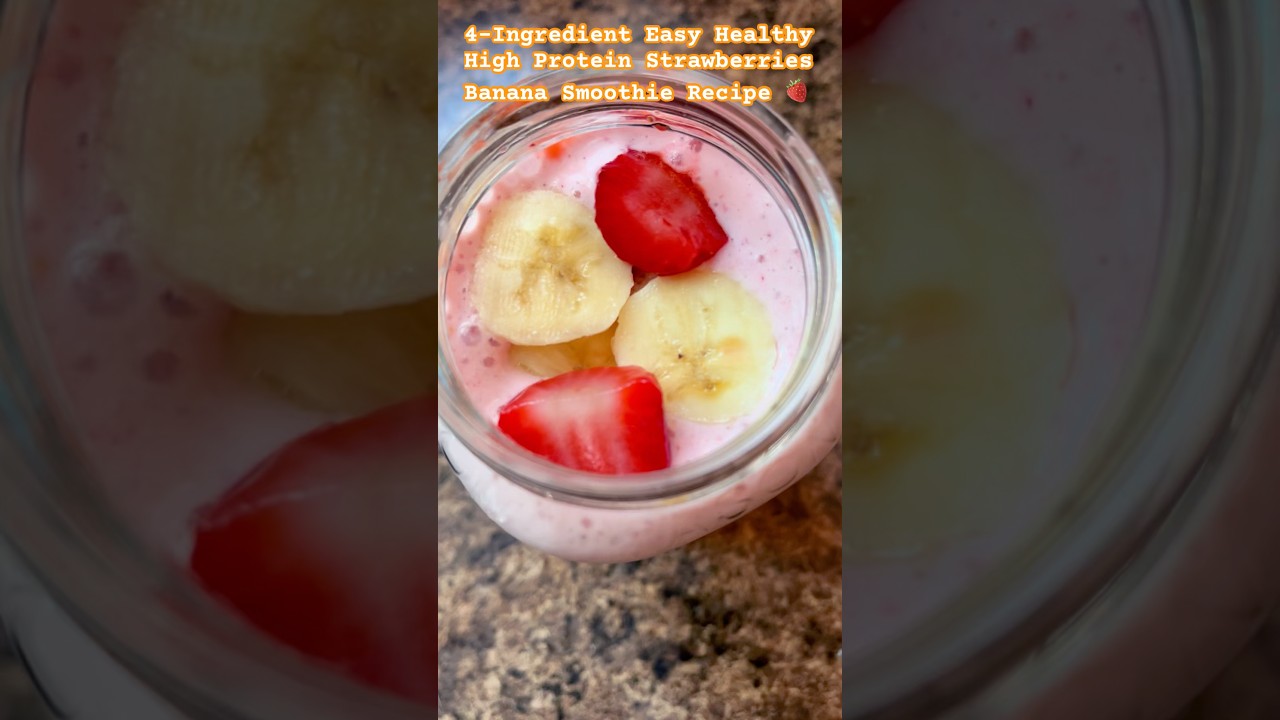 Start your morning right with this 4-ingredient high-protein healthy strawberry and banana smoothie 🍓🍌! It’s quick, healthy, and perfect for breakfast or a snack. #heathyrecipes #smoothierecipes #youtubeshorts #recipes