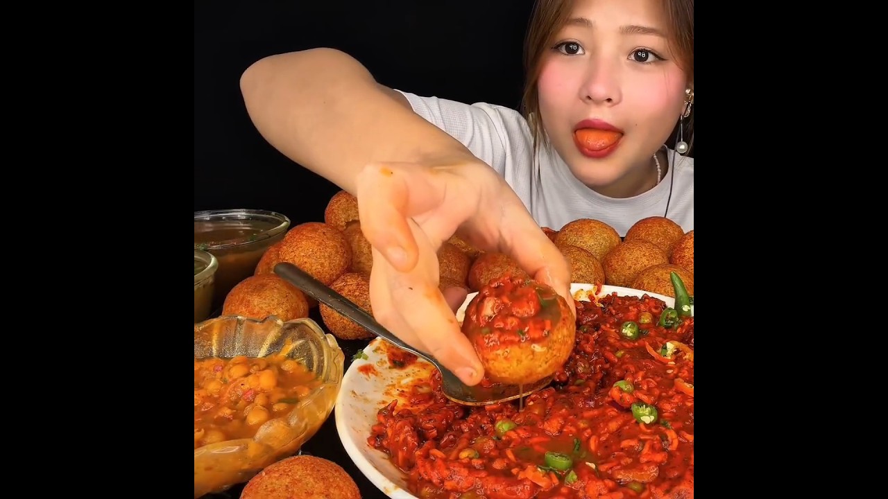 ASMR: EATING SPICY PANIPURI🔥 PUCHKA CHALLENGE || #shorts #mukbangn#asmreating #mukbangasmr #asmr