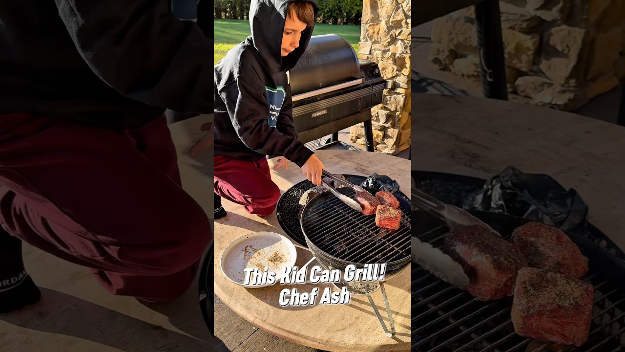 Father and Son Time! 8 and making the PERFECT STEAK! ⚠️ watch the charcoal you use! 😡 #shorts