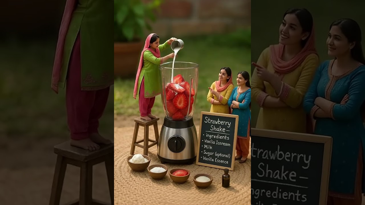 #strawberryshake #giantfood #desifood #asheenfoodclub #refreshingdrink #foodshorts #viralvideo #villagegirls #funrecipes #cartoon