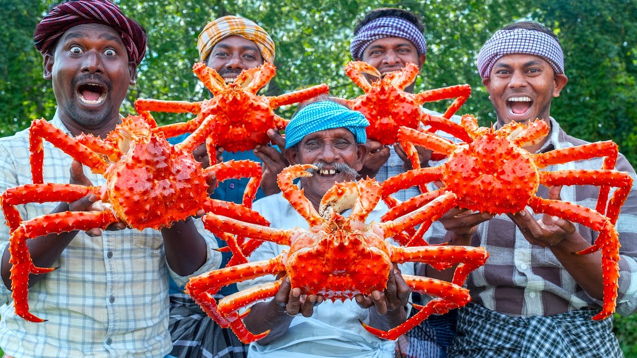 Village Cooking Channel is now in America! In this special video from the USA, we cook giant King Crabs in our traditional village style. First, the crabs are boiled whole, then we make small holes in the shell to add cold-pressed gingelly oil, dry red chillies, shallots, and salt. Finally, we roast the crabs over firewood heat, letting the spices infuse deep inside. This American village seafood feast shows the authentic taste of VCC in USA — a true celebration of flavors and tradition.