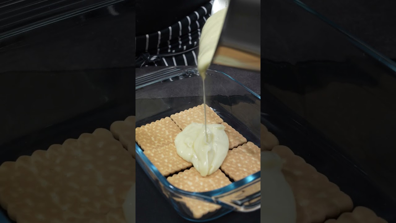 NO-BAKE BISCUIT CAKE 🍪🍰🍫 with Vanilla Cream, Chocolate and Peanut #shorts #asmr #recipe