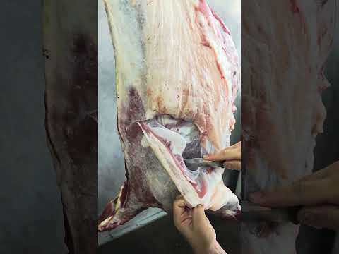 Watch how a professional butcher carefully separates a lamb’s front leg from the ribs.