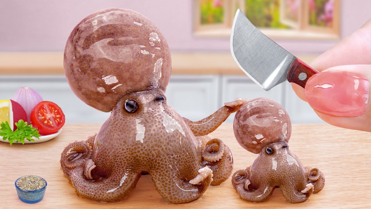 Top Of Seafood 💕 Miniature Korean Octopus with Tamarind Sauce 💕 Tina Mini Cooking